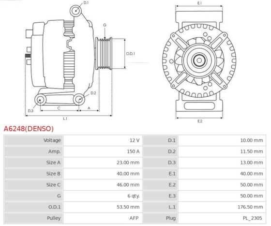- DENSO: 021080-1360, 104210-2420, 104210-2421, DAN1105