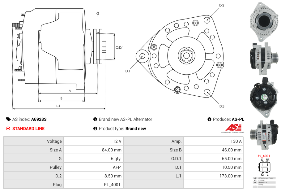 SKU: A6928S Kategoria: Alternator Marka: AS-PL