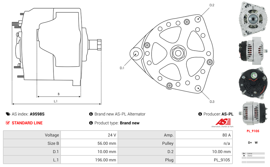 SKU: A9598S Kategoria: Alternator Marka: AS-PL