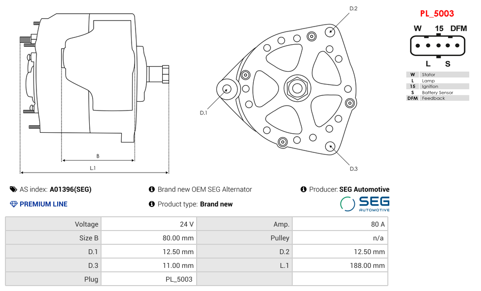 SKU: A01396(SEG) Kategoria: Alternator Marka: SEG AUTOMOTIVE