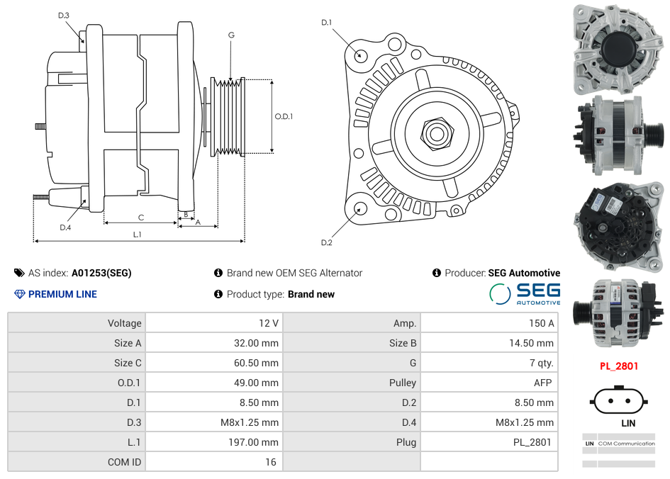 Alternator RENAULT TALISMAN 140 MEGANE IV Grandtour 115 160 DUSTER 150 III