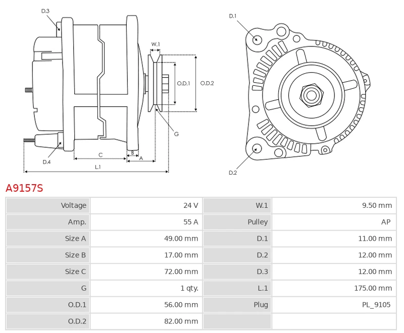 Alternator BENFRA 4.12 5.9; 5.15 5.9; 7.08 5.9; 9.07 5.9; 9.08 5.9; 9.11 5.9; 9.12 5.9