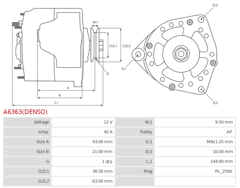 - DENSO: 100211-1630, 100211-1680, 100211-4690, 101211-1310, DAN2026, 101211-8961